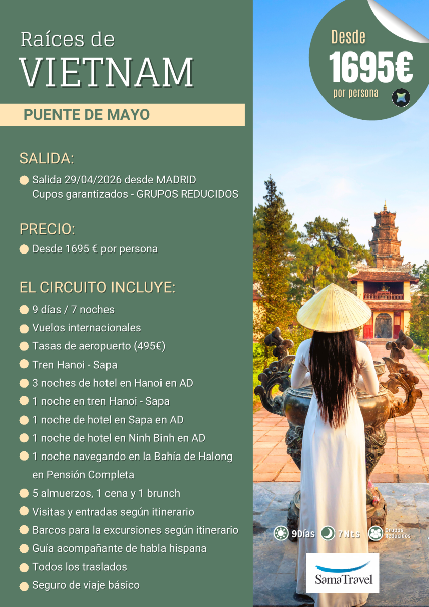 "Raíces de VIETNAM y Sapa" P.Mayo: circuito 9 días - cupos garantizados [Desde MAD] (29abril) **desde 1.695€**