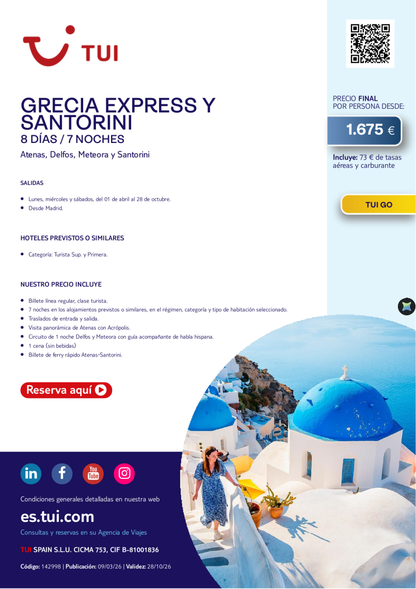 Grecia Express y Santorini. 8 días / 7 noches. TUI Go. Salidas desde MAD desde 1.675 €