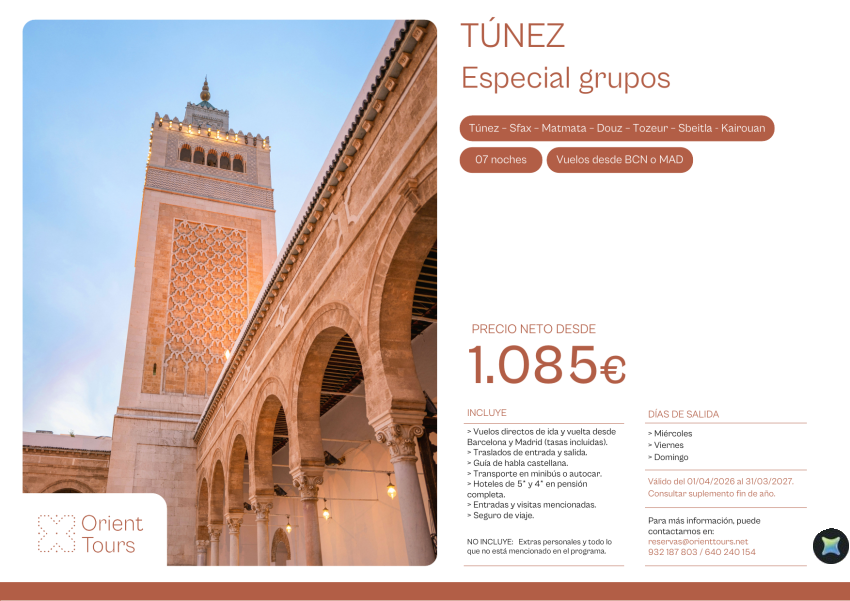 Especial grupos - Túnez cultural 07 noches salidas grupales con vuelos desde Madrid y Barcelona desde 1.085€
